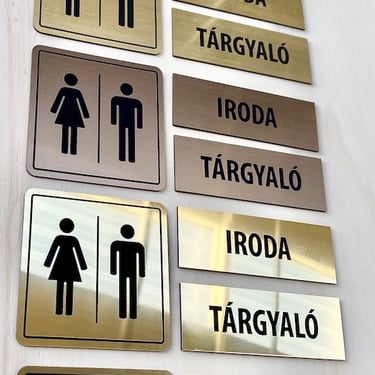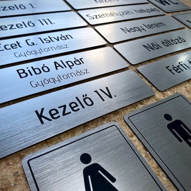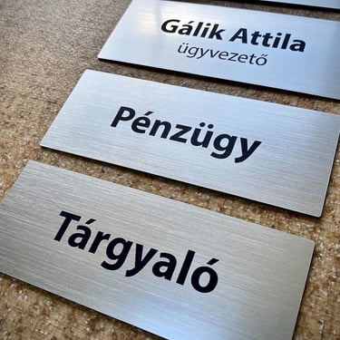 Irodai és névtáblák: Elegáns megoldások ajtókra, asztalokra vagy tárgyalókba.